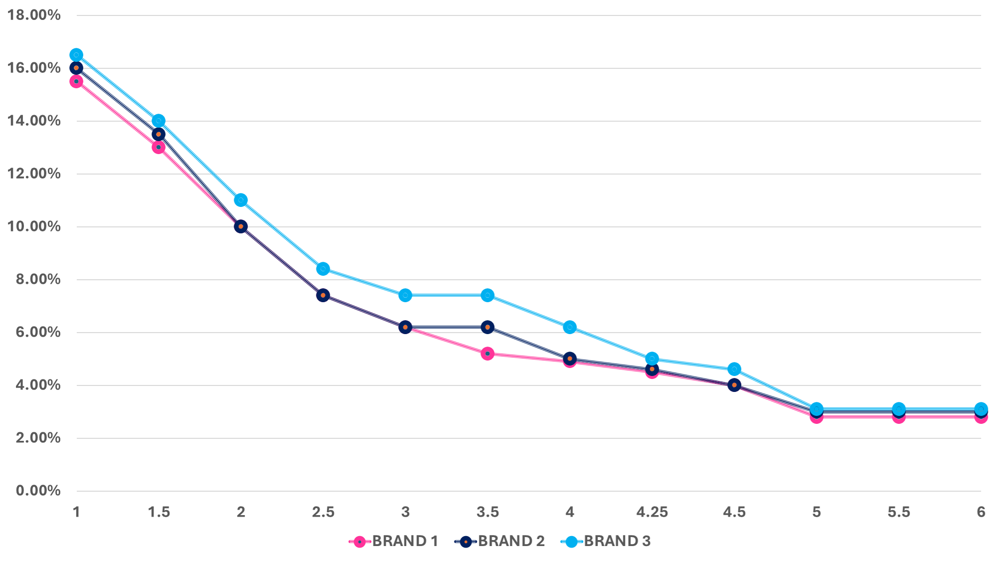 A Choice-Based Conjoint Analysis (CBC) is used to assess preference, including the importance of attributes and willingness to pay. In CBC, participants are presented with choices between different products in a competitive setting, allowing for trade-off decisions. These decisions are then analyzed to understand how the likelihood of purchase is affected by various product attributes, such as brand, price, or technical features like a smartphone's battery life.