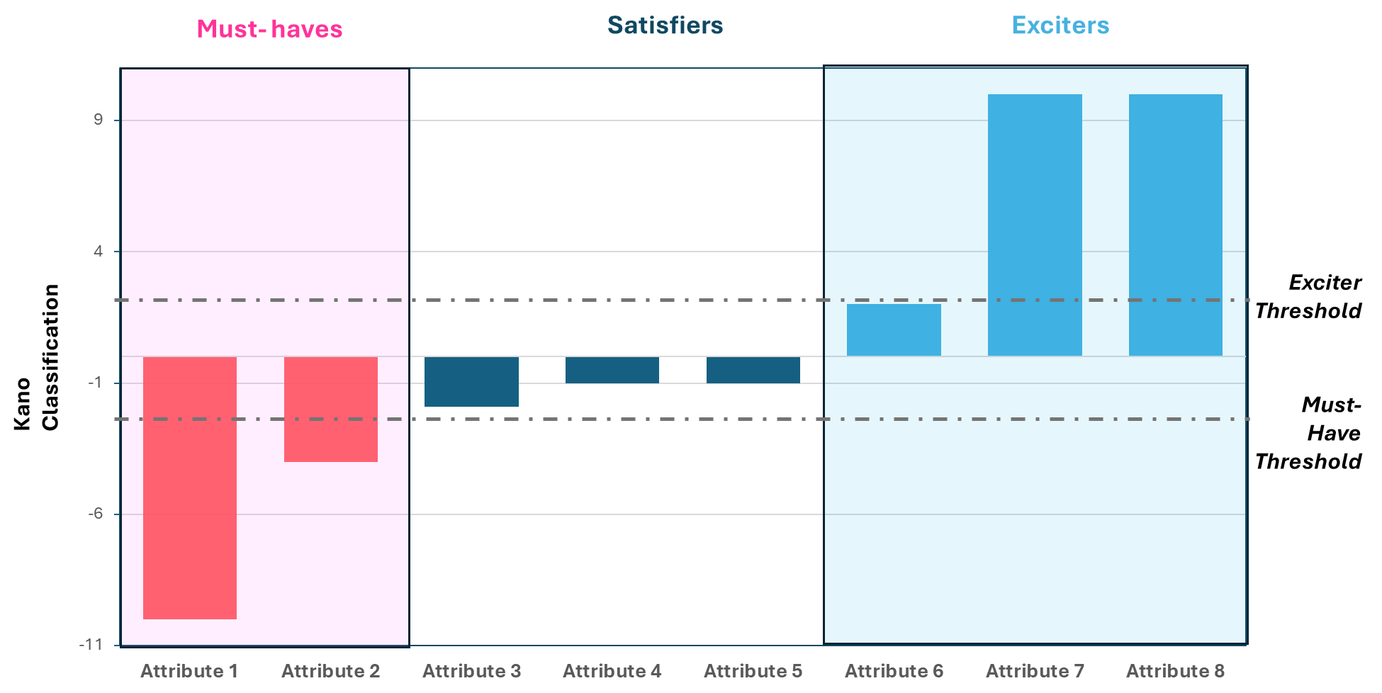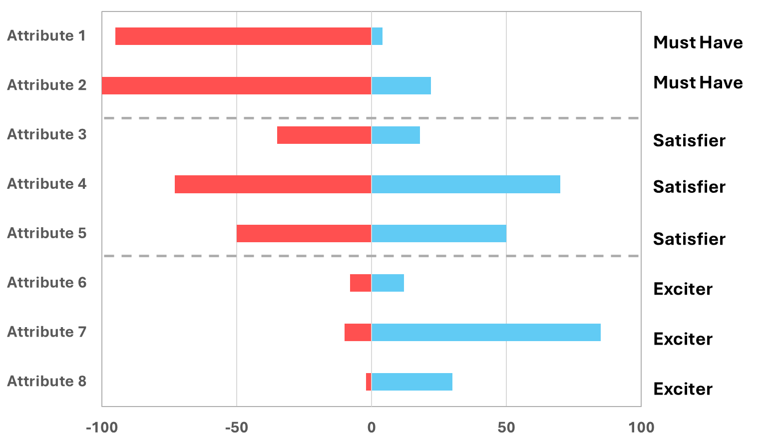 Penalty Reward Analysis, also recognized as Kano Factors, is employed to explore the correlation between an outcome and the features examined in a Key Driver Analysis. The objective is to comprehend the effect of enhancing or diminishing the performance of a driver on the outcome, enabling optimization of actions to improve the outcome.